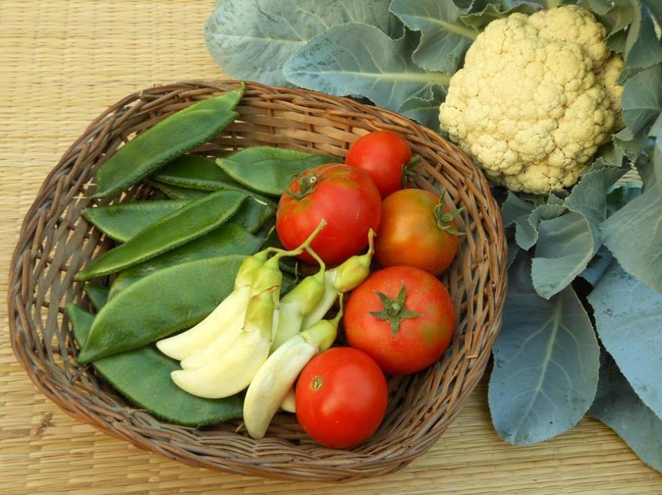 Then came the tomatoes, broad beans, carrots, capsicums and the snow-peas. The hummingbird tree (barely 10-months old at the time) was in full flower even in late December and the tiny herb corner blushed with the lively red amaranth. But the stars of my terrace garden were a pair of latecomers – the cabbage and the cauliflower – the ones that had me biting my nails all through November and most of December. What a relief it was to see the first floret appear encased in a protective ring of outer leaves and the cabbage heads tightening, growing bigger and firmer by the day.