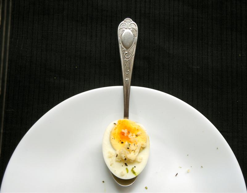 And, here's the deviled egg (topped with mozzarella, crushed peppercorn & lemon zest) we had for breakfast: