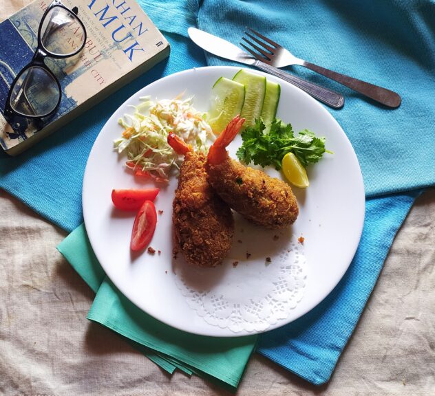 I made some Prawn Cutlets just the other day. Doubled the crunch with a handful of crushed cornflakes thrown into the breadcrumbs.